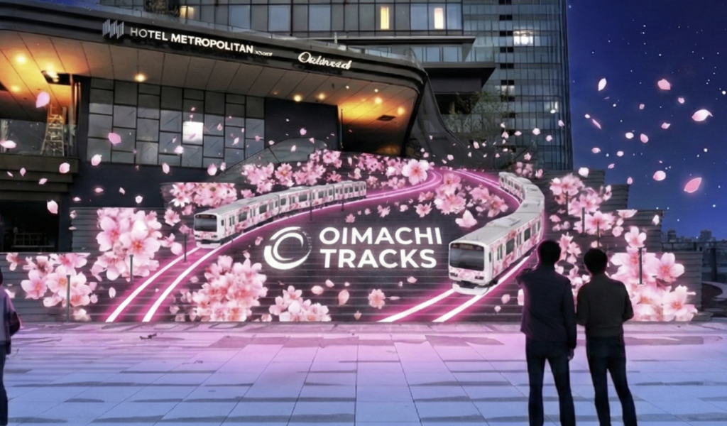 Opened on March 28, 2026, Oimachi Tracks is a new mixed-use development directly connected to Oimachi Station. To mark the launch, NAKED INC. has transformed parts of the complex into an after-dark walking route with projection mapping, illuminated installations and light effects across Station Plaza, Cross Plaza and Tracks Park. The whole thing riffs on Oimachi’s railway history, with lights designed to connect the station, plaza and park like a glowing set of tracks through the area.