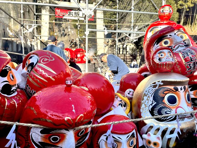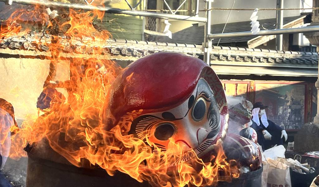 The Ōme Daruma Market is all about shopping for new Daruma, burning old Daruma, and feasting on festival favorites.