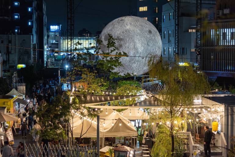From mid-September until early October, you’ll find the town filled with art installations and a giant moon for its annual Moon Art Night festival.