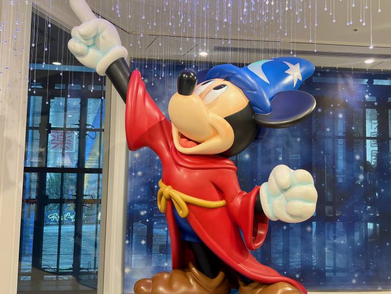 For a more personalized experience, you can head to D-Lab, a customization zone where you can put your name on select plushies’ feet. Take a bit of time to appreciate features such as the Fantasia Mickey statue and mural near the store front.