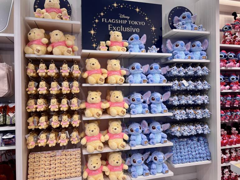 Top picks aren’t just seasonal items — Tokyo-themed goods are a hit too. Find Mickey and Minnie dressed in kimonos, and Stitch dressed in a haori and hakama, along with exclusive Tokyo tote bags. You’ll also find うるぽちゃちゃん (Urupocha-Chan): ridiculously cute, chubby plushies of Disney characters. These are also only available in Japan.